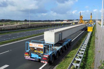 het aanbrengen van de brugdelen voor het Broekweg viaduct.