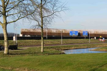 De storm Amy zorgt in het eerste weekend van oktober voor vertraging bij het aanbrengen van de brugdelen voor het Broekweg viaduct. Door het afsluiten van de Tjalmaweg is het erg druk op de Katwijkerweg en de Hoofdstraat.