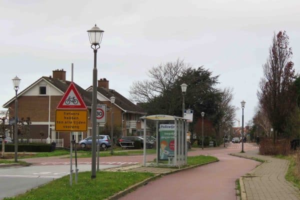 Een foto genomen aan het begin van de Hoofdstraat komend vanuit Leiden.